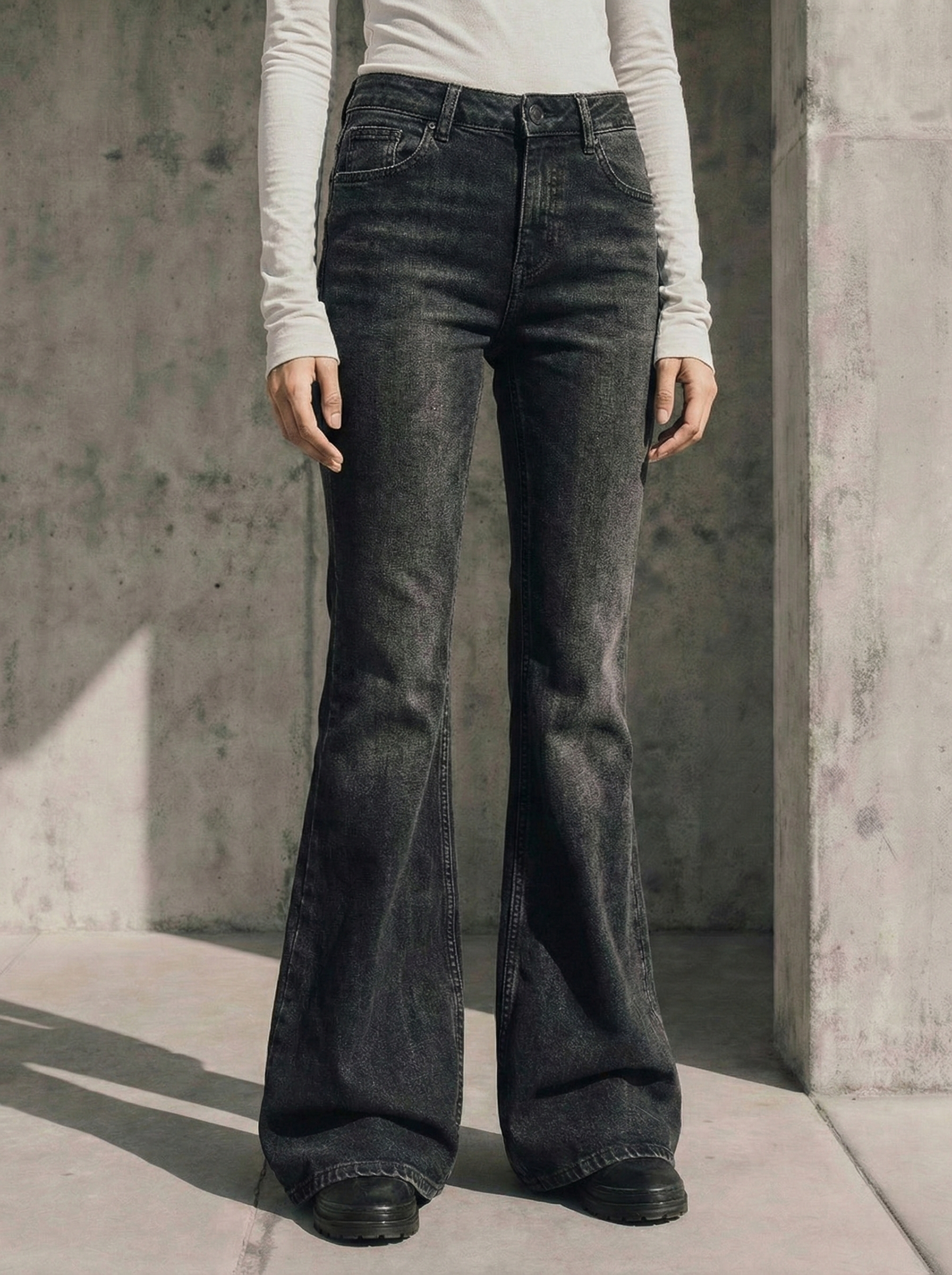 Faded Black Mid-rise Flare Jeans